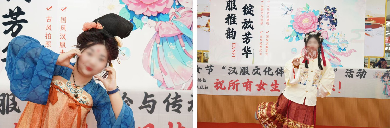 漢服社通過真實(shí)的漢服服裝展示,讓大家可以近距離感受漢服文化。